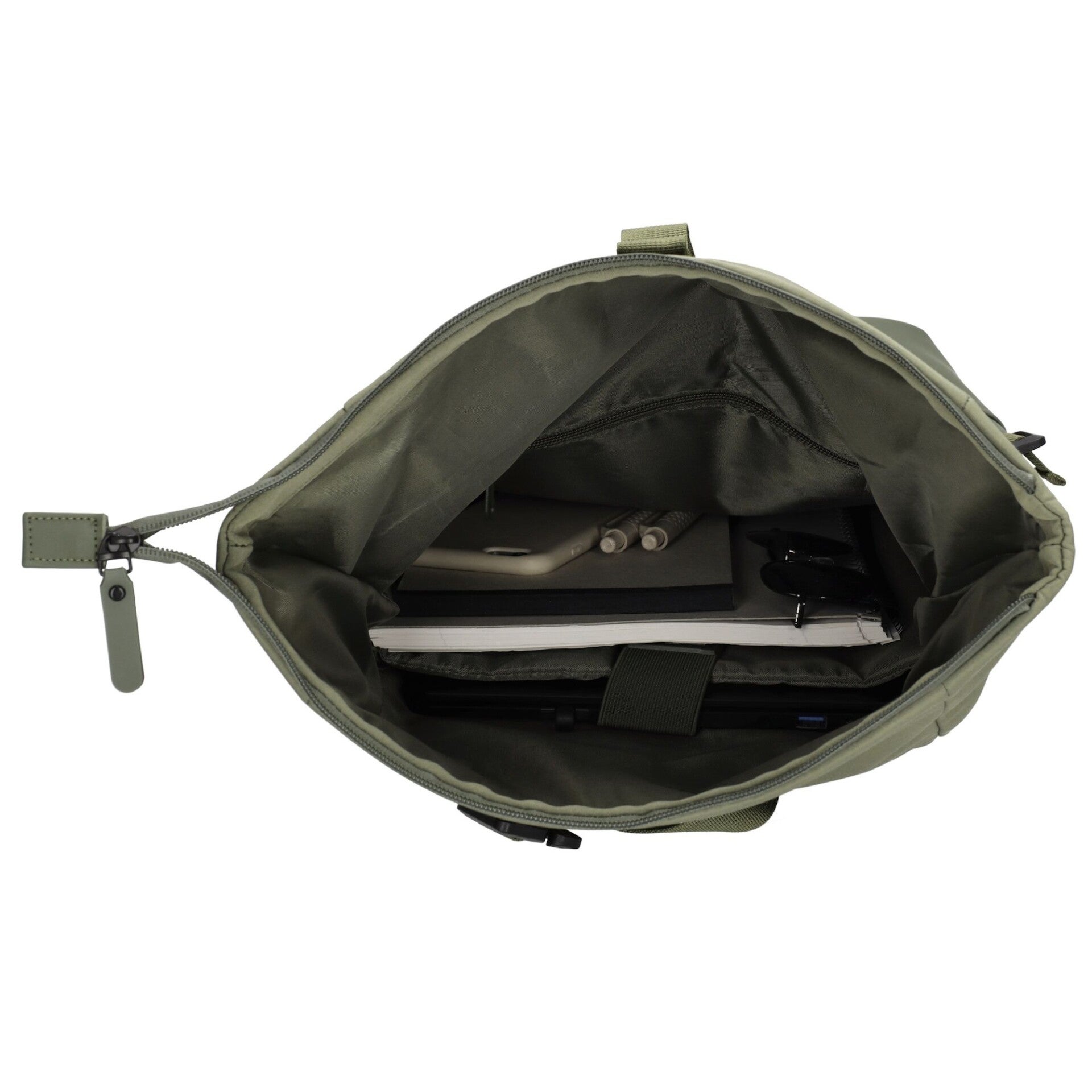- Opgerolde bovenkant met ritssluiting voor een unieke look