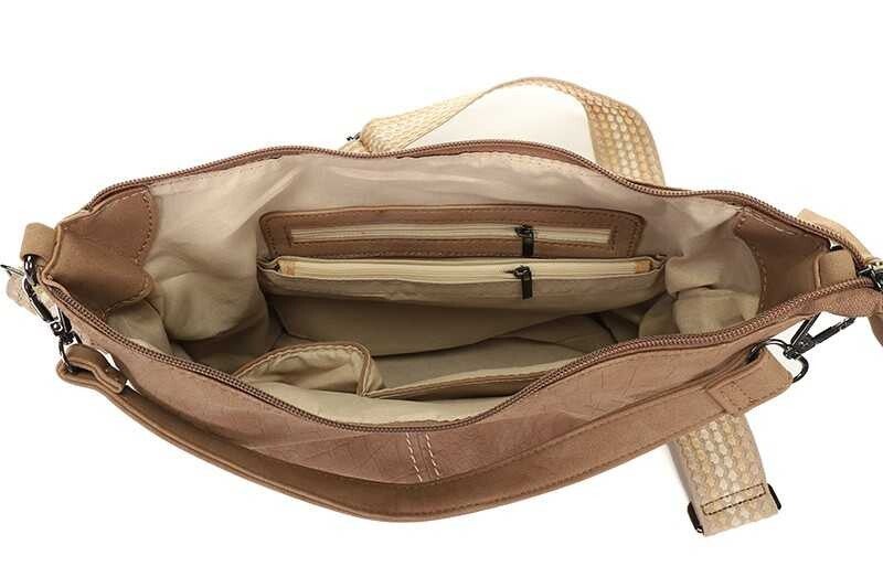 Dankzij de hengsels kan de tas op verschillende manieren gebruikt kan worden, als schoudertas of crossbody tas. De tas is gemaakt van hoogwaardig PU / veganistisch leer.