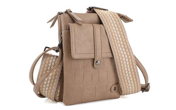Upgrade je stijl met ons modieuze schoudertasje 'Tyler'! Dit trendy accessoire voegt een vleugje elegantie toe aan elke outfit. Dit stoere telefoontasje heeft twee vakken die met een rits afzonderlijk worden afgesloten. Het tasje bevat genoeg ruimte voor ieder merk mobiele telefoon, maar heeft daarnaast ook plek voor andere benodigdheden zoals sleutels, geld en pasjes. De Tyler wordt geleverd met twee schouderbanden; een effen smalle band, en een geweven brede schouderband / bagstrap. Zo kun je zelf kiezen welke band het beste bij je outfit past!