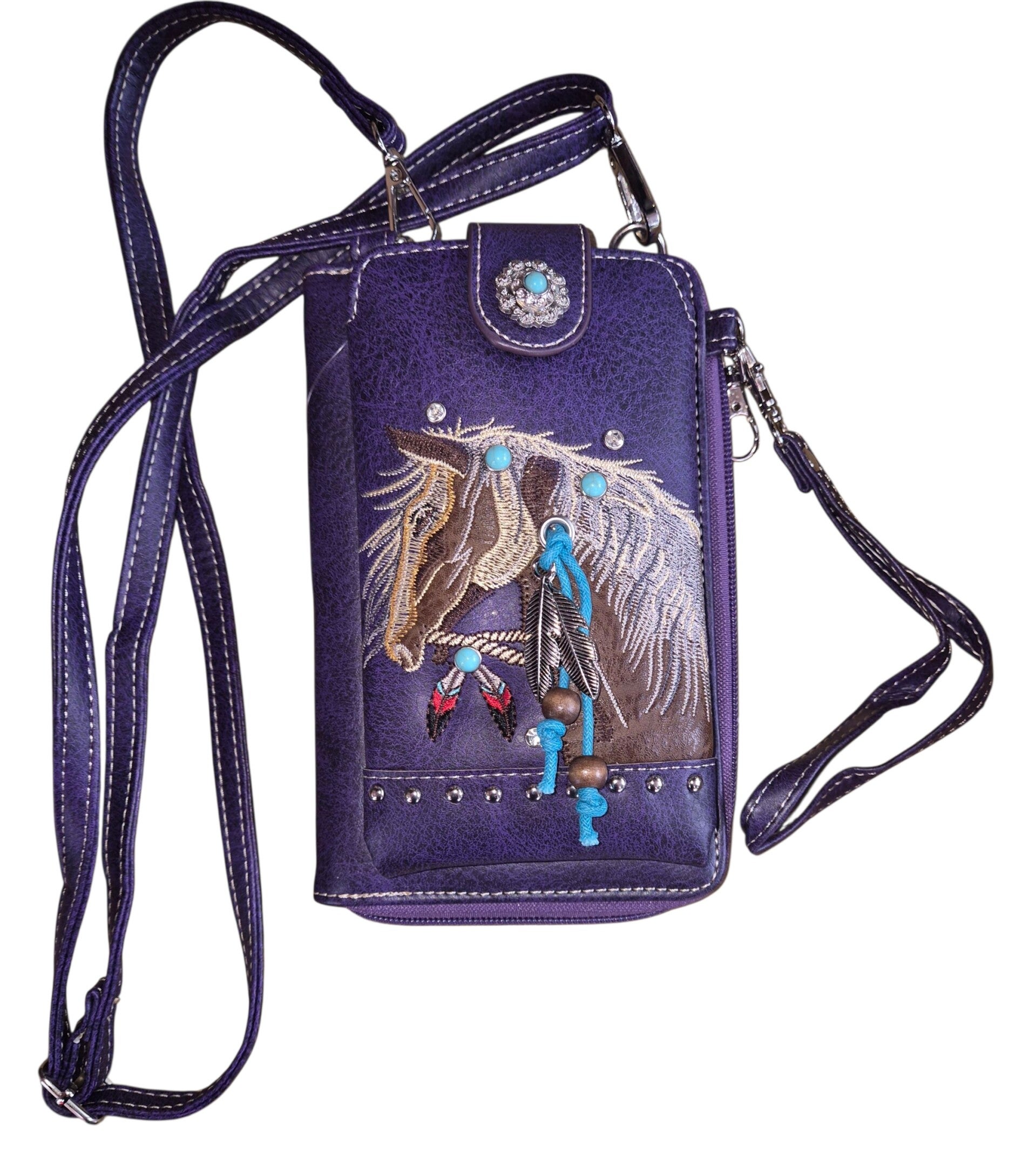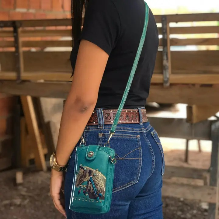 Prachtige Horse Crossbody Western Telefoon en Portemonee tasje Een stijlvol en functioneel accessoire dat het gemak van een portemonnee en telefoonhoesje combineert met de veelzijdigheid van een polsbandje.